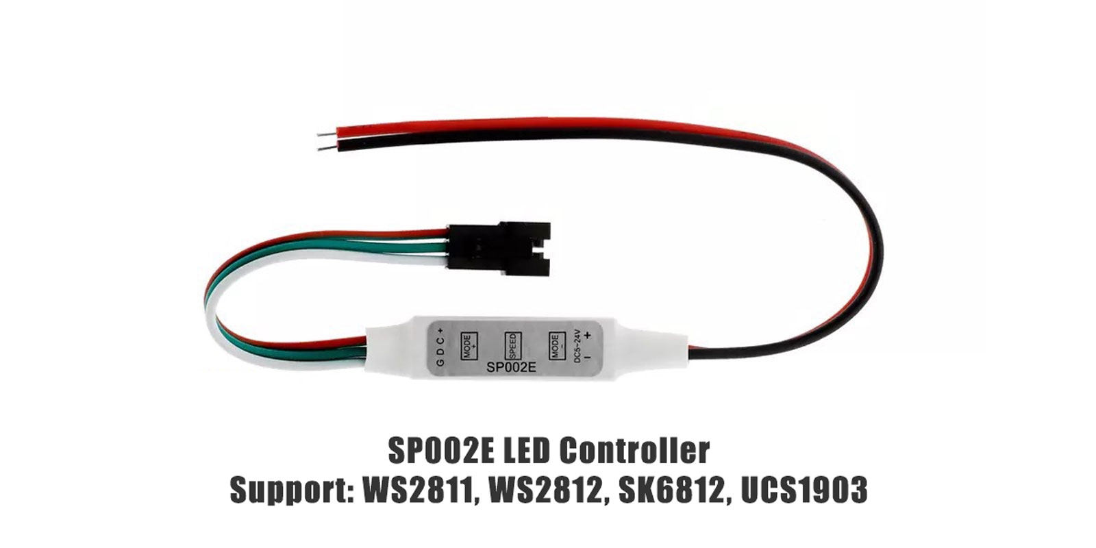 SP002E迷你三键控制器采用先进电脑控制芯片。可根据客户实际需求选择自己想要的模式,自带68种花样效果,可实现爆闪、呼吸、渐明渐暗、频闪、闪烁等多种模式炫丽灵动;并有8级调速,速度跨度大。最多可带多达2048个像素点;电源具有防反接功能。